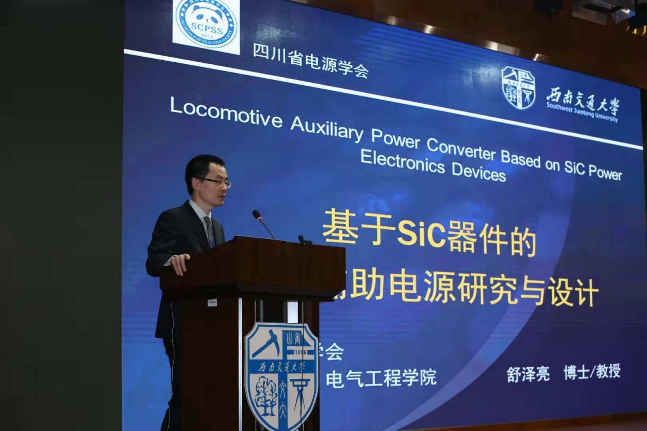 四川省电源学会副理事长、西南交通大学舒泽亮教授,向大会做题为《基于SiC器件的列车辅助电源研究与设计》的报告。